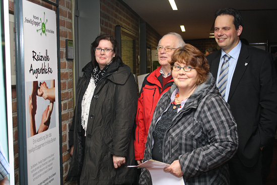Im Bild von links nach rechts: Eva Spangemacher, Hans-Jürgen Heursen (Gemeindesportverband), Andrea Bunzel (Kath. Kirchengemeinde) und Bürgermeister Andreas Grotendorst schauten sich gemeinsam die Ausstellung “Reizvolle Augenblicke”an.