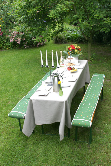 Reservieren Sie für 40 € einen Tisch (bis zu 8 Personen) für sich und Ihre Familie, Freunde, Bekannte, Firmen, Vereine usw. indem Sie anrufen, mailen oder schreiben. Ihren Tisch müssen Sie allerdings selbst decken. Also Geschirr, Gläser, Besteck, eine gefüllte Kaffeekanne und alles, was Sie sonst noch essen und trinken möchten, bringen Sie mit. Gerne auch Tischdecken, Blumen, Kerzenleuchter, Sekt, halt das, was zu einem stilvollem Frühstück in Schlossnähe passt.